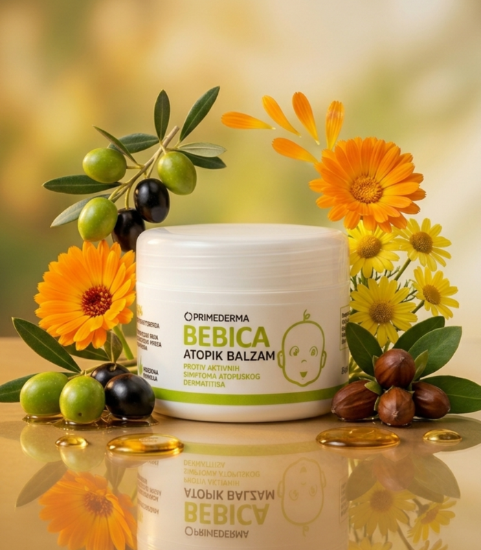 Prirodni balzam za umirenje aktivnih simptoma atopijskog dermatitisa kod beba i dece.